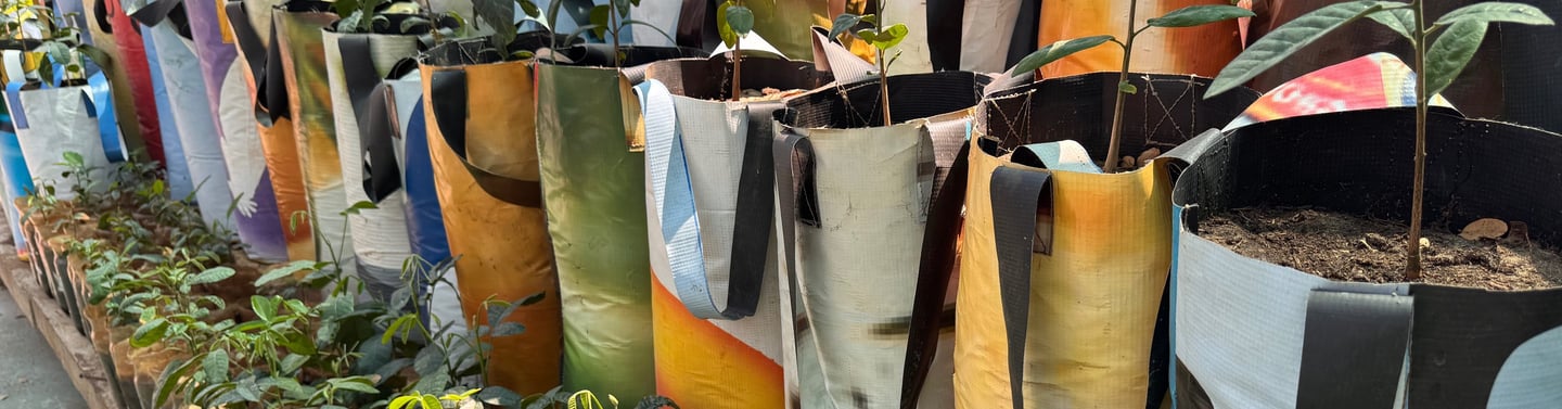 - Discarded plastic bottles become upcycled grow bags for seedlings